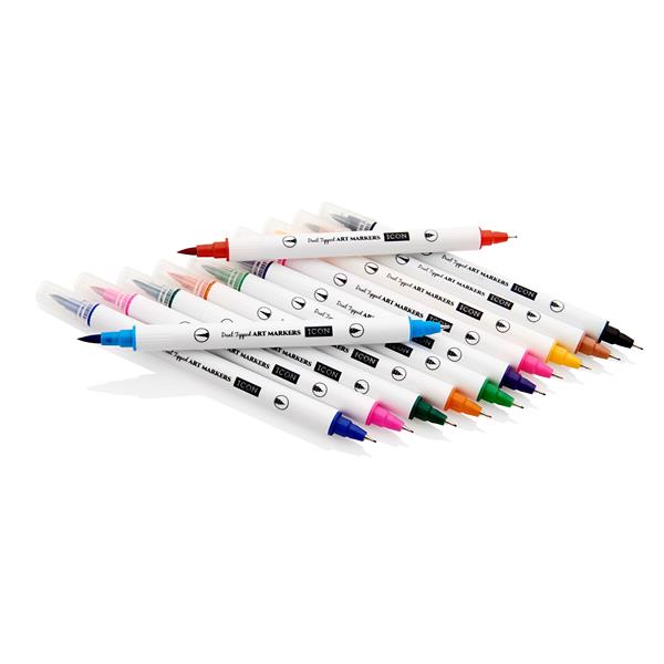 Dual Tip Art Markers 12 pk . Stunning collection of professional sketching dual tipped markers in various colours with brush stroke tip and fine point tip. Odourless ink.