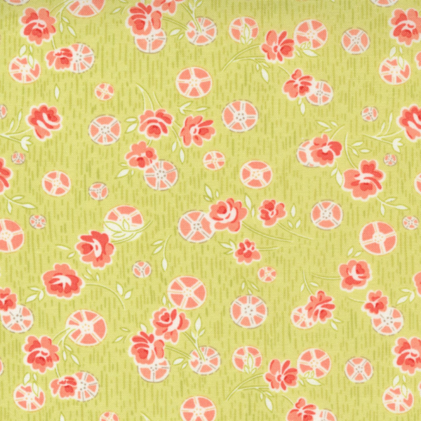 Moda Strawberries and Rhubarb by fig tree and co Sprout is a printed 100 % cotton quilting fabric that is suitable for quilting and patchwork. It is also suitable for craft projects such as bunting or home decor, or even making clothing.