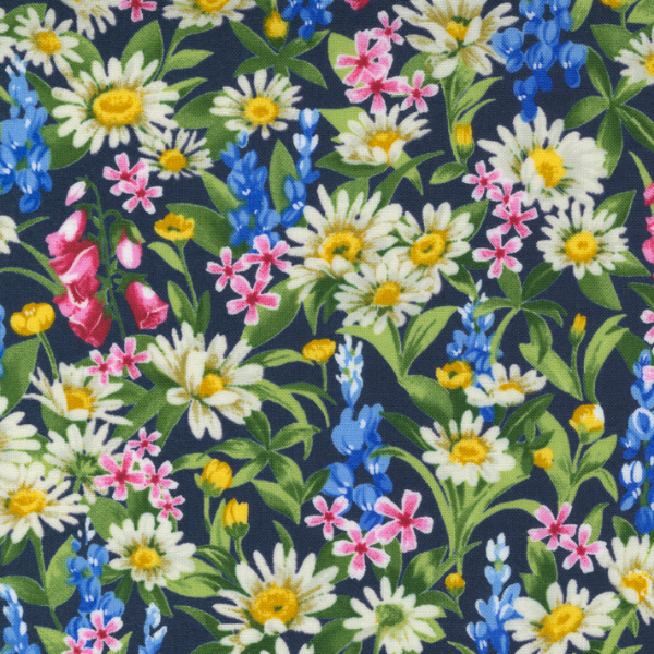 Moda Wildflowers Indigo is a printed 100 % cotton quilting fabric that is suitable for quilting and patchwork. It is also suitable for craft projects such as bunting or home decor, or even making clothing.