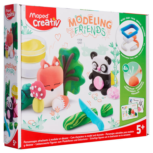 Modelling Friends Set Cute is A range of easy-to-make small characters with a stylised and recognizable shape. It will be really fun to create these Modeling Friends and their unique background. Everything is made out of super nice dough. After a few hours, they become solid decorations.