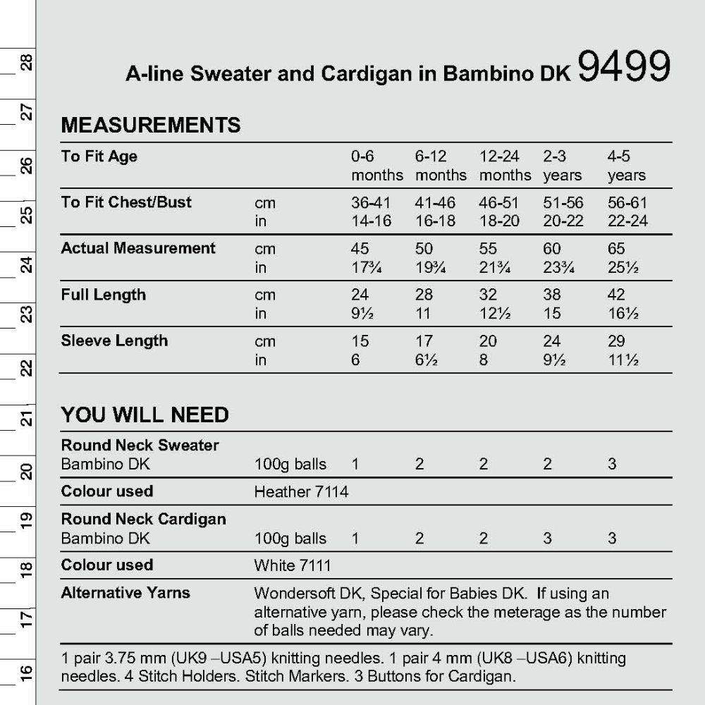 Stylecraft Bambino DK Knitting Pattern (9499)